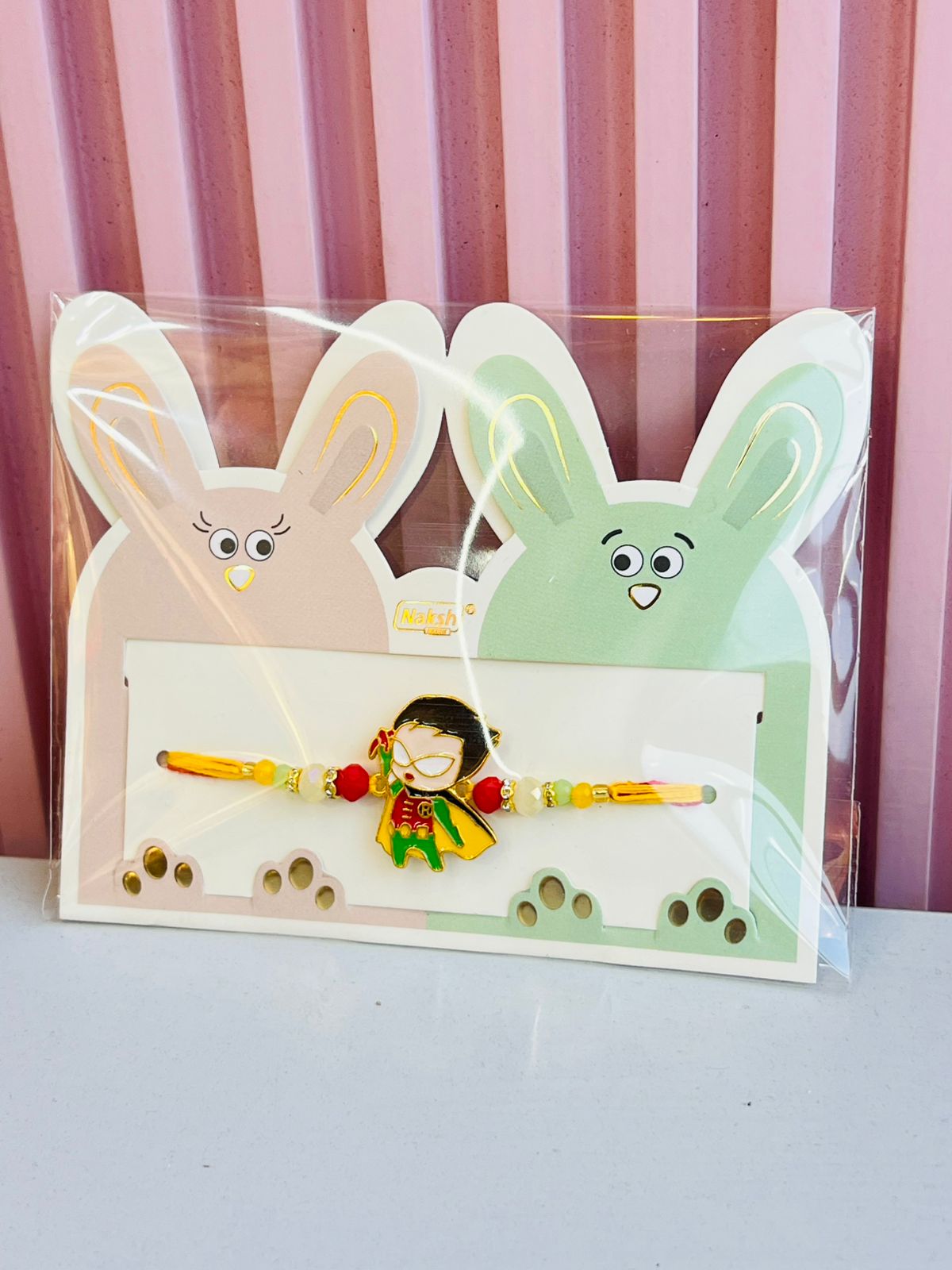 Packaging: Comes in a bunny-themed card with dual-tone (beige & mint) design