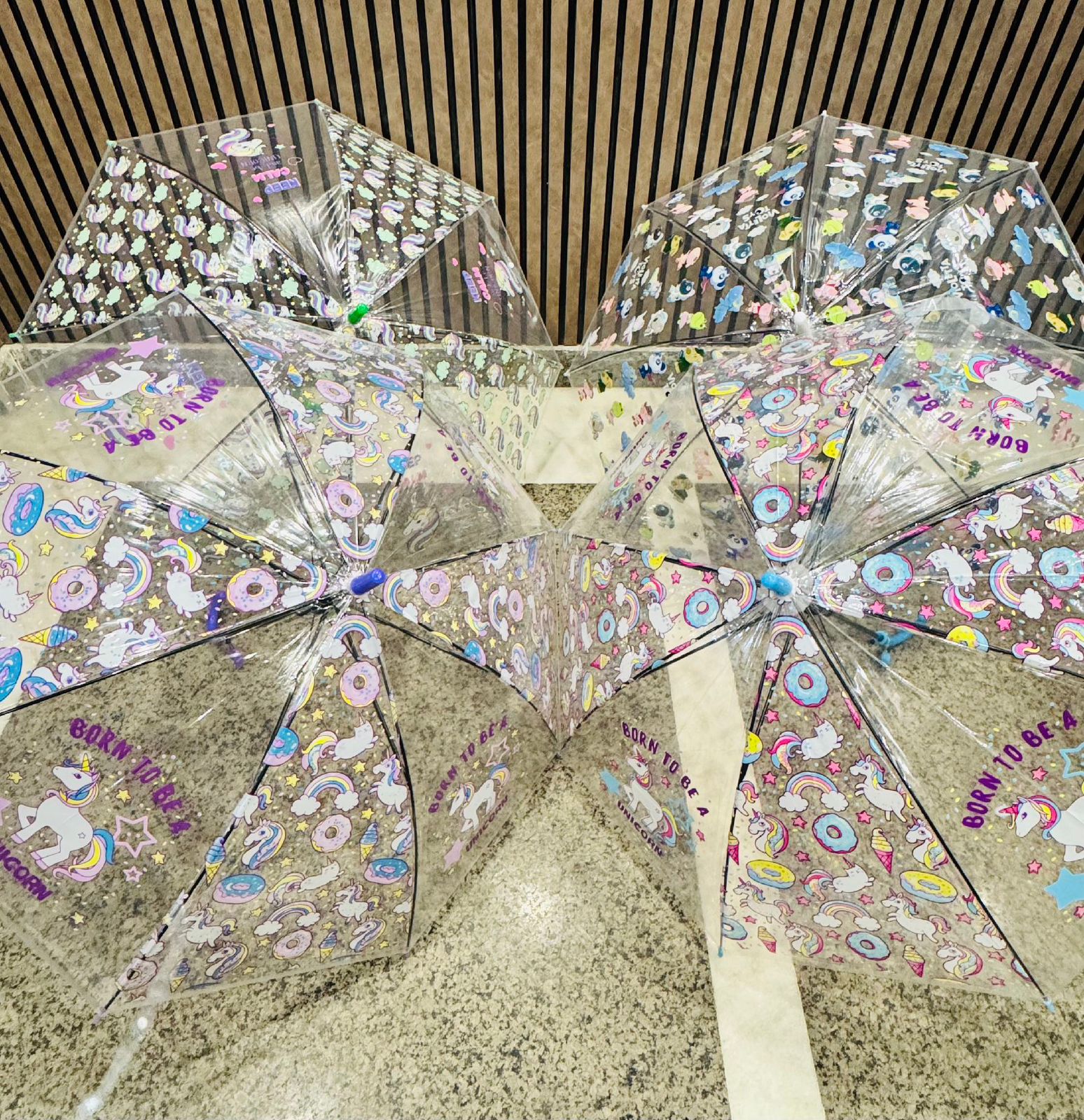 🌈 Transparent umbrellas with colorful unicorn and donut prints