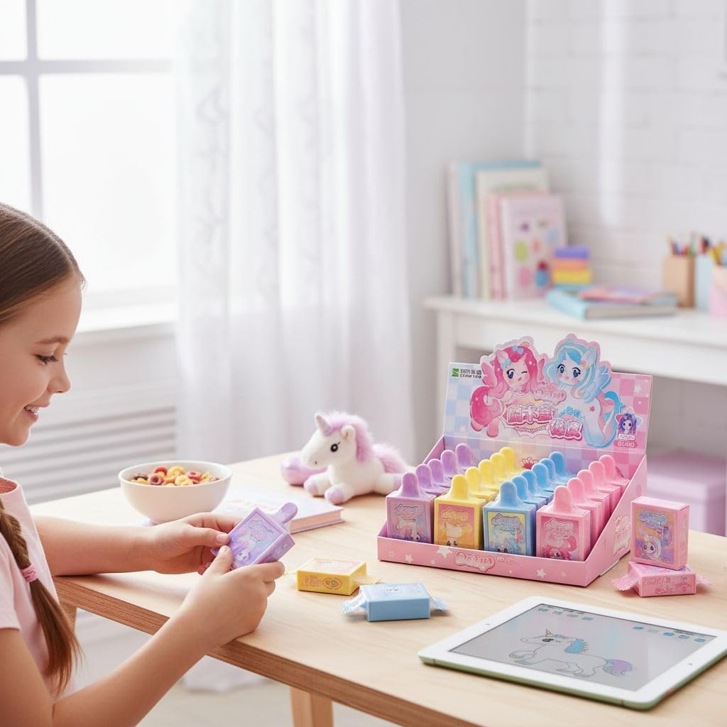 - Cute unicorn-themed eraser set