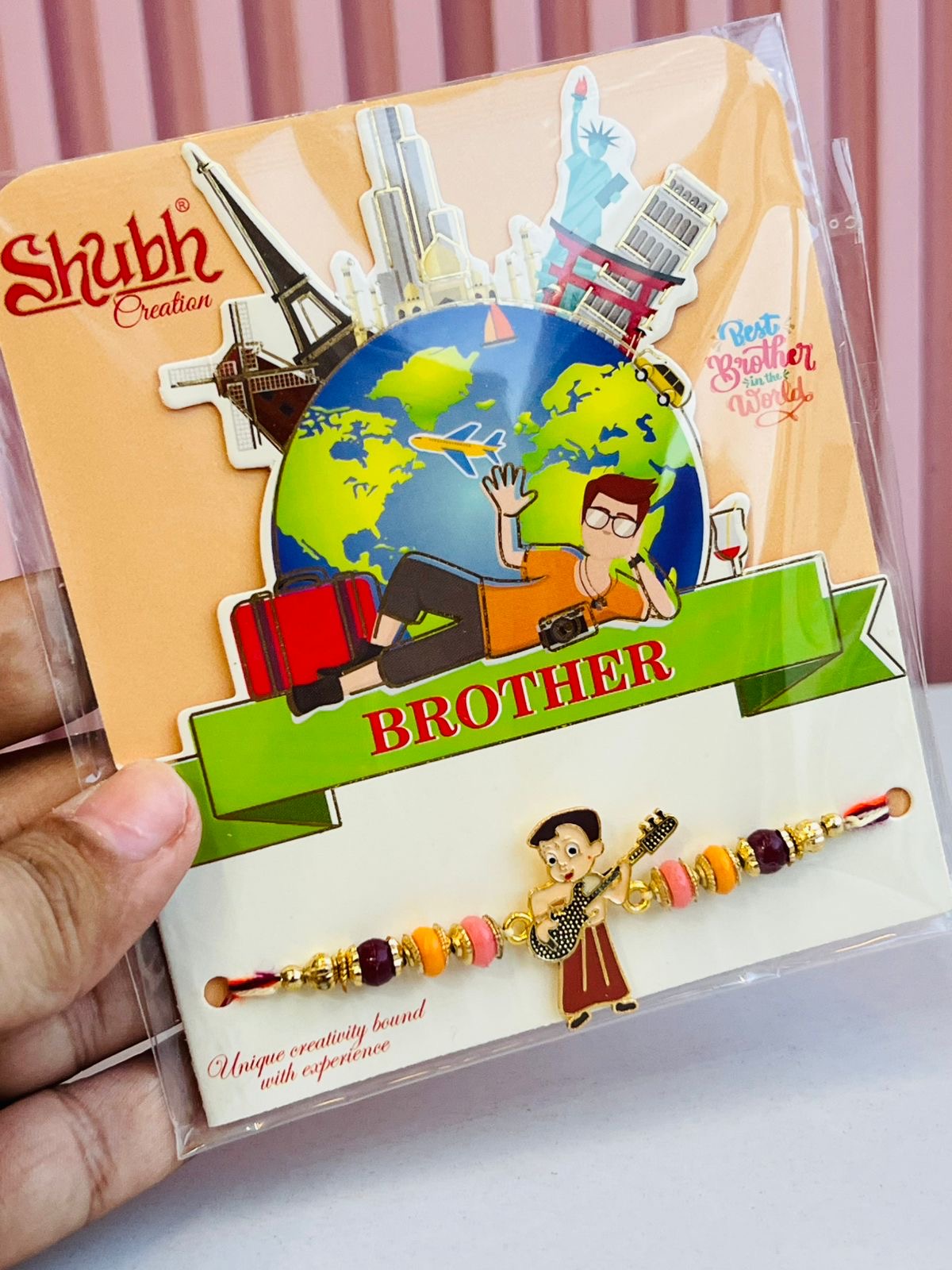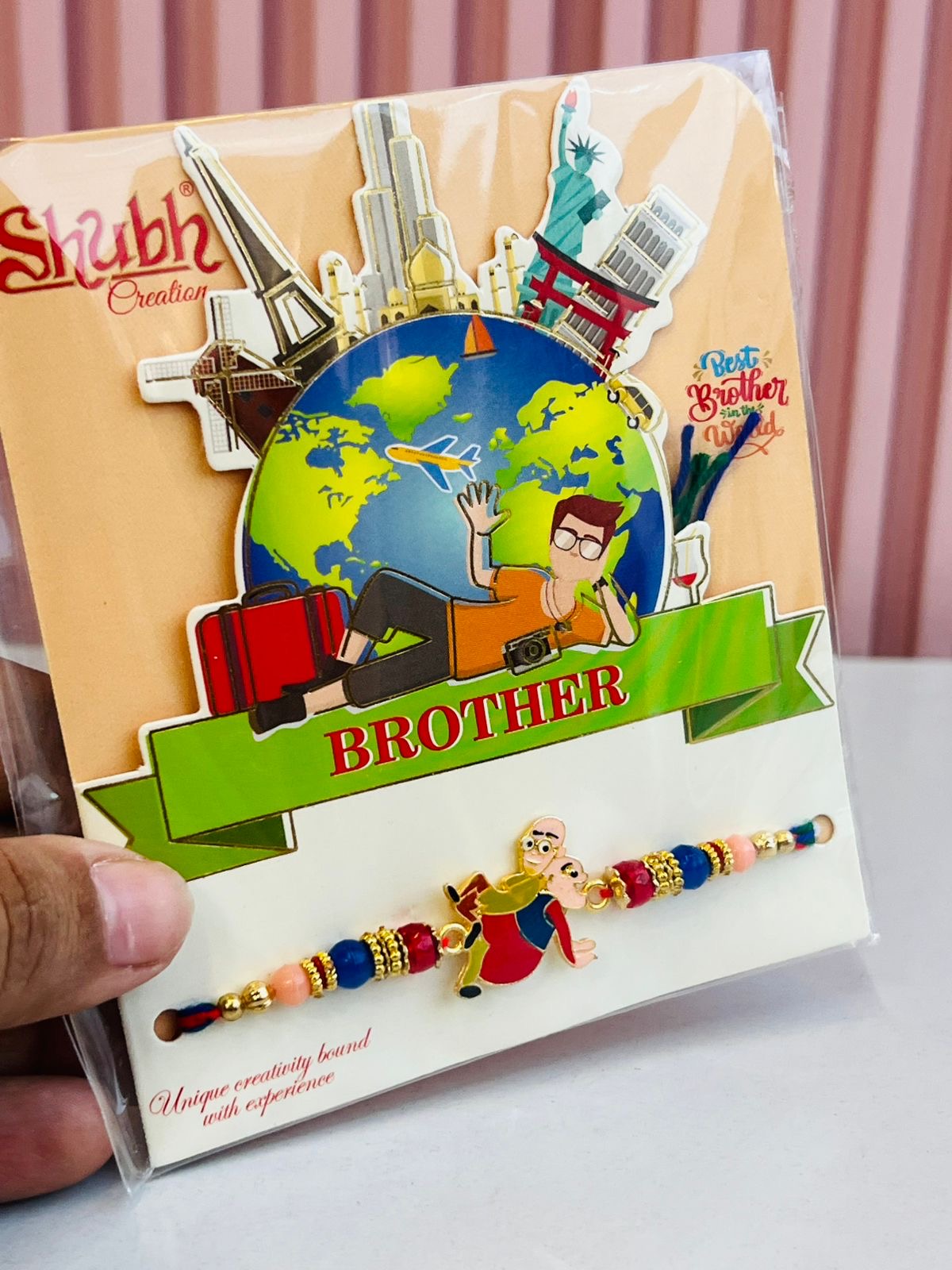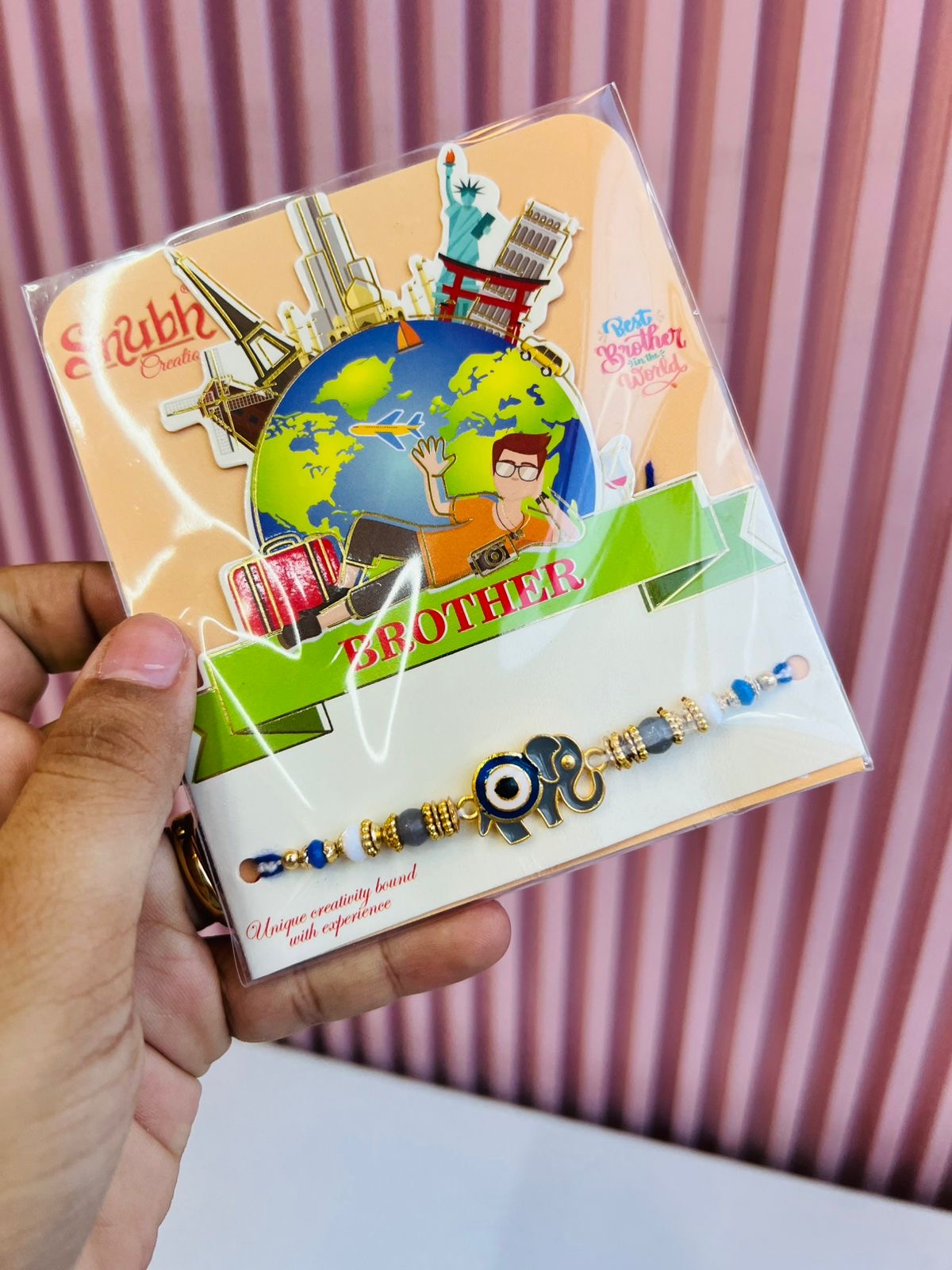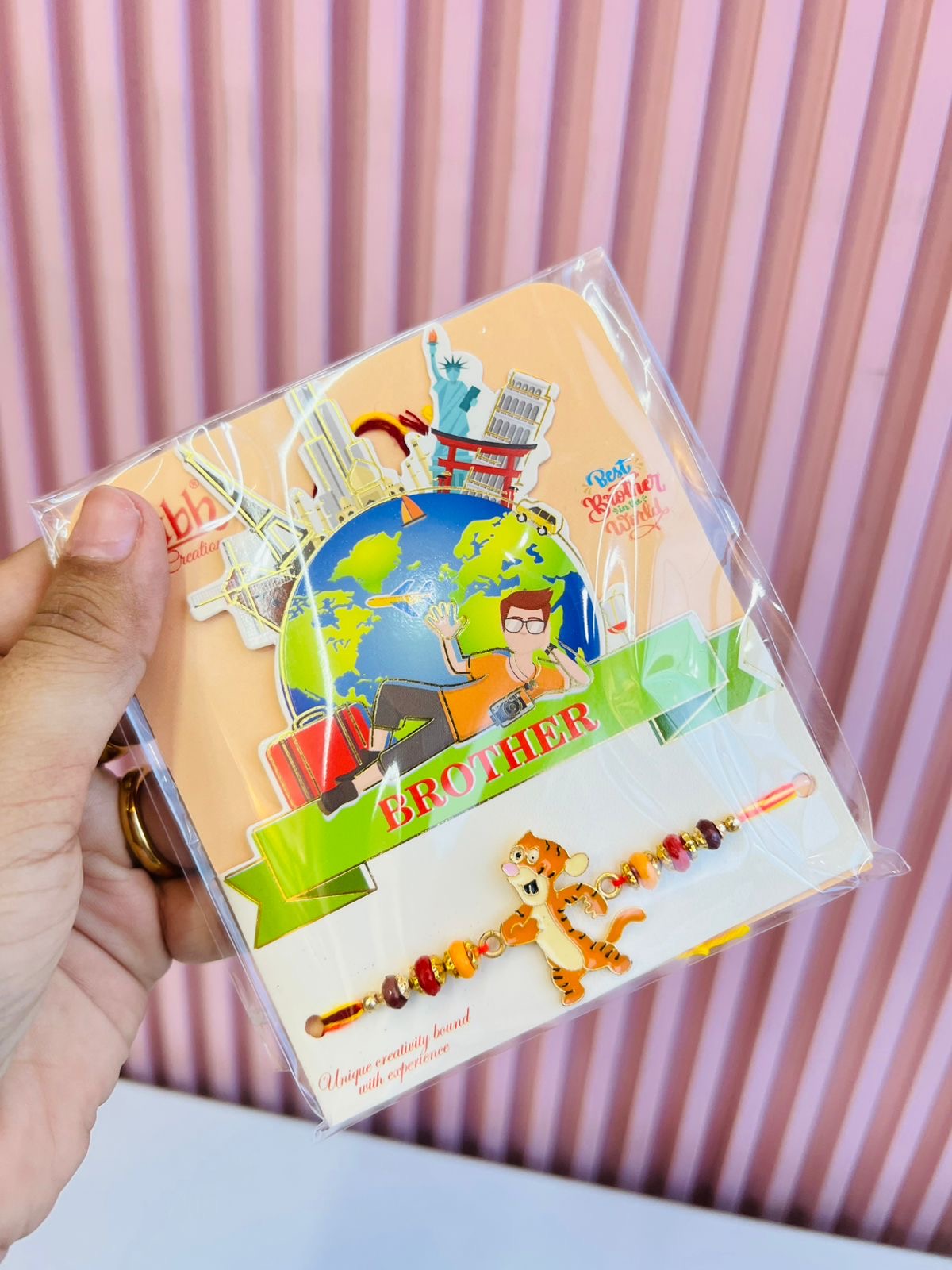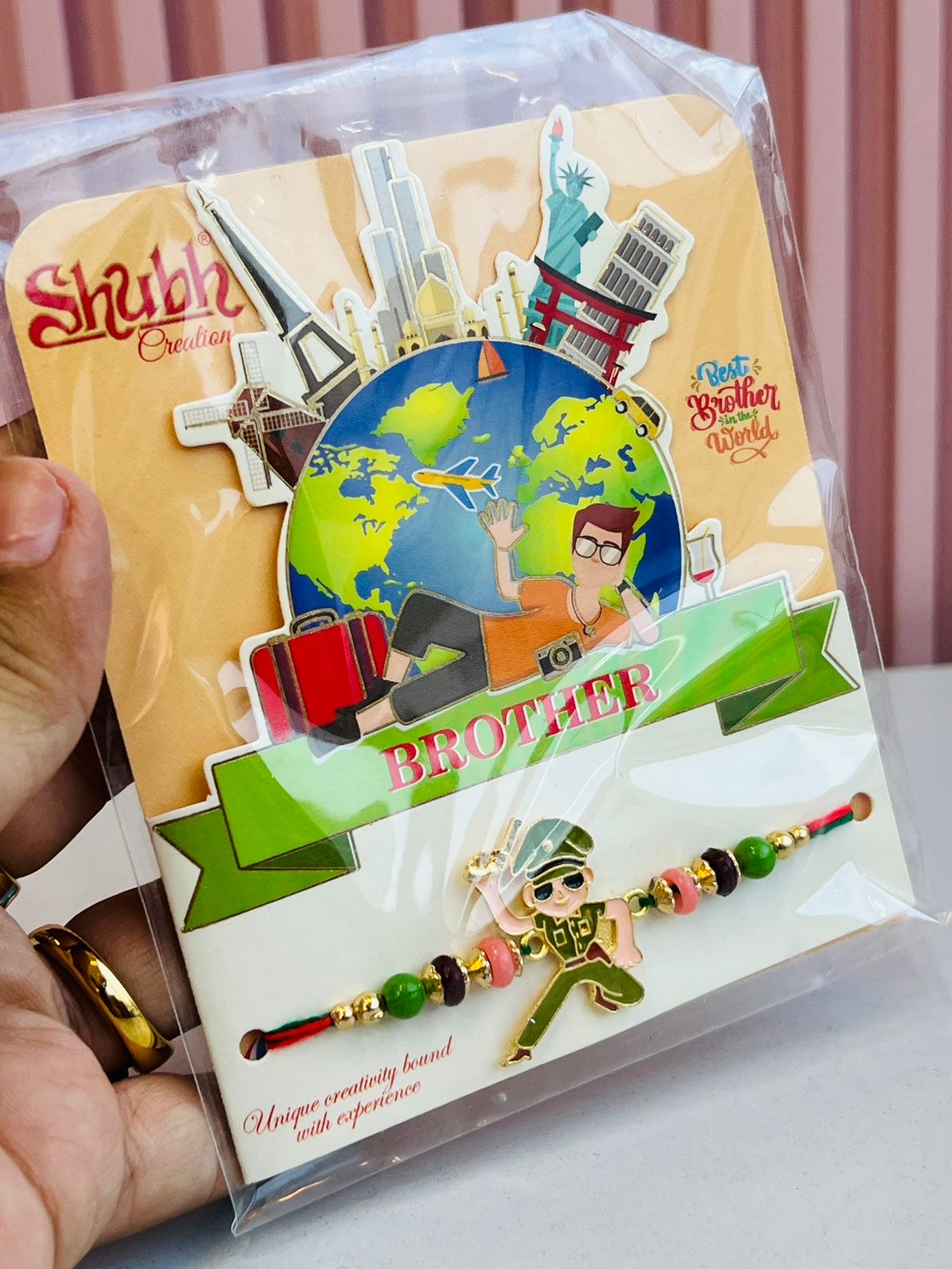 Packaging: Fun travel-themed card with "Best Brother in the World" quote