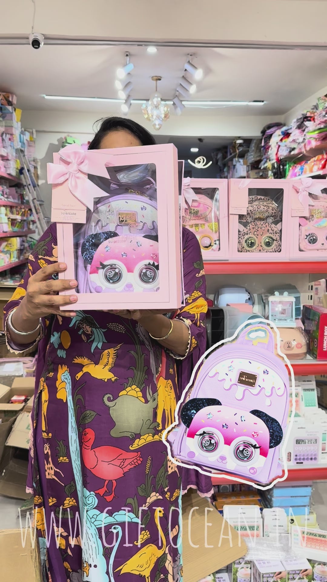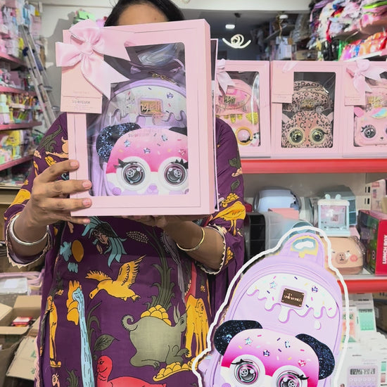 Large, Animated Eyes: A standout feature on all four bags is the large, expressive eyes that seem to "move" or have a 3D effect. The designs inside the pupils vary to match the character (e.g., hearts for the unicorn, donut for the cat).
